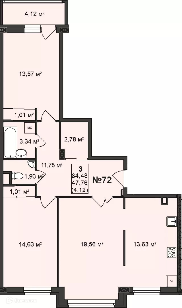 Планировка 3 комн. в ЖК Дворянский