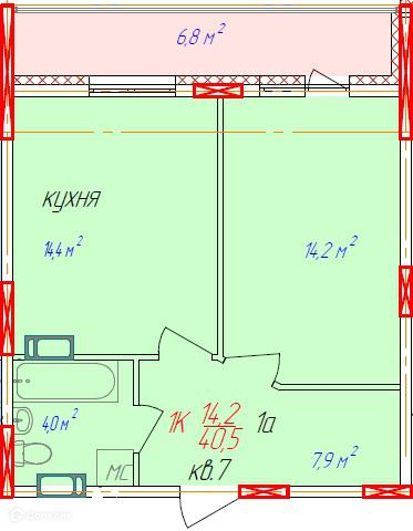 - Жилая площадь: 14.2 м²