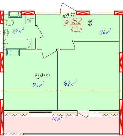 - Жилая площадь: 16.2 м²