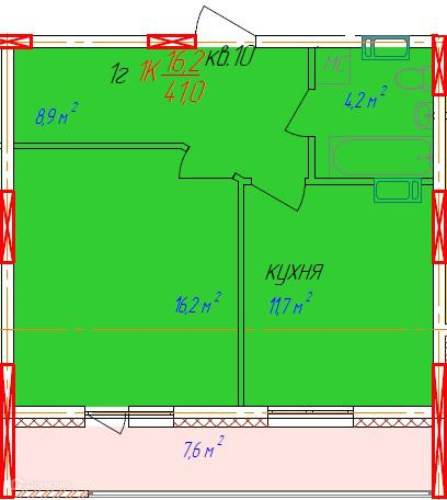 - Жилая площадь: 16.2 м²