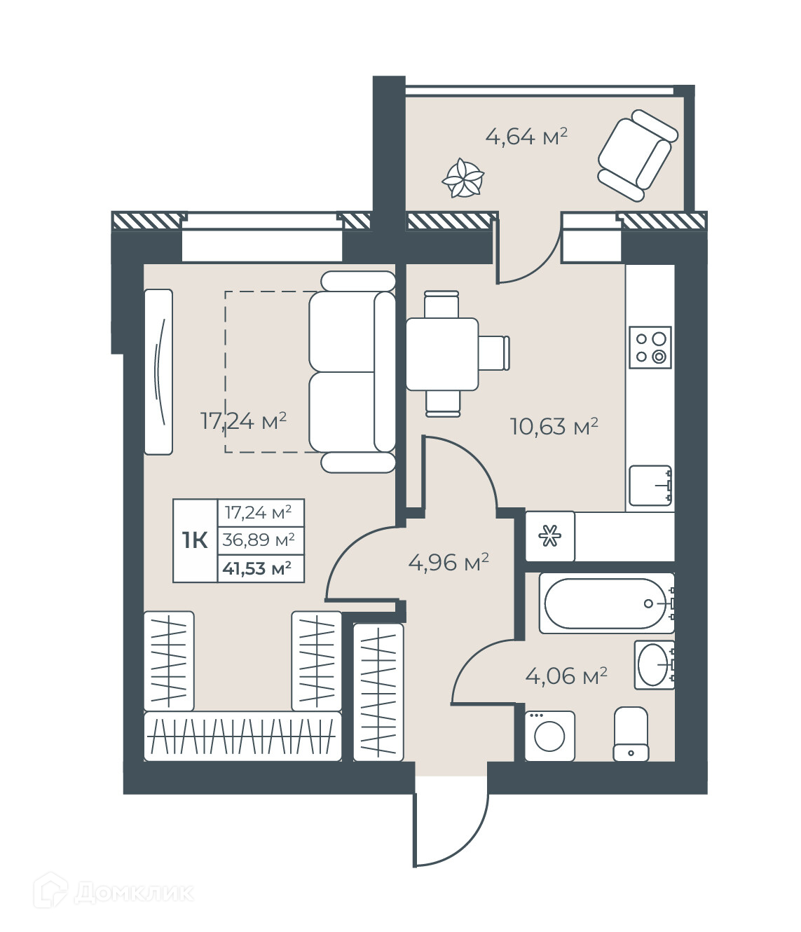 Планировка 1 комн. в ЖК Ботаника Парк